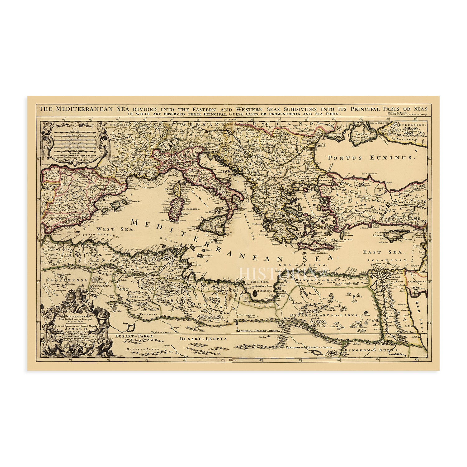 Old Map of Mediterranean Sea 1693 Vintage Map Wall Map Print